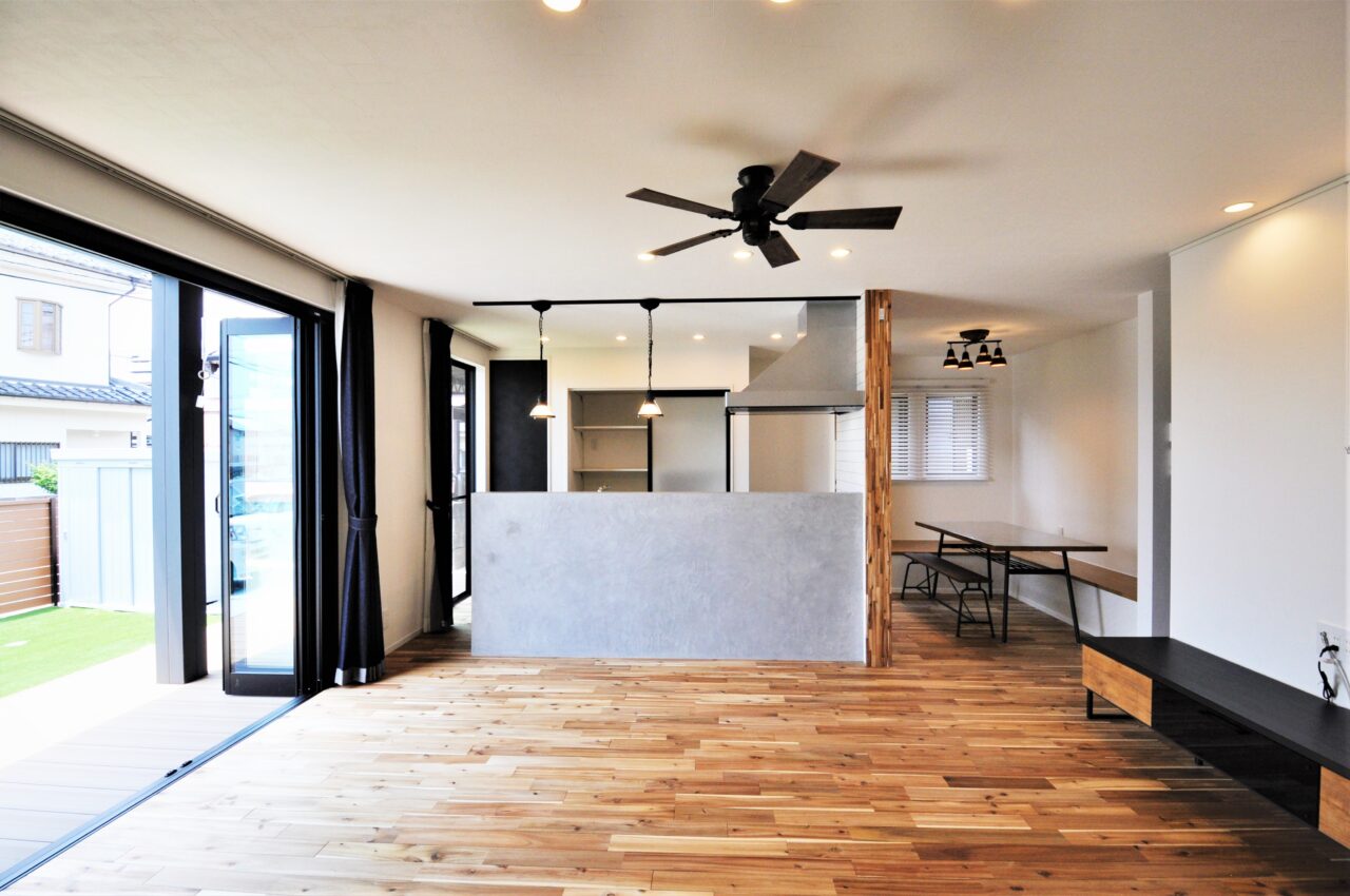 LDK横には3帖のホビールームを設け、ダイニングはデイベッド&ベンチを造作。趣味と暮らしが存分に楽しめるくつろぎの空間ができました。